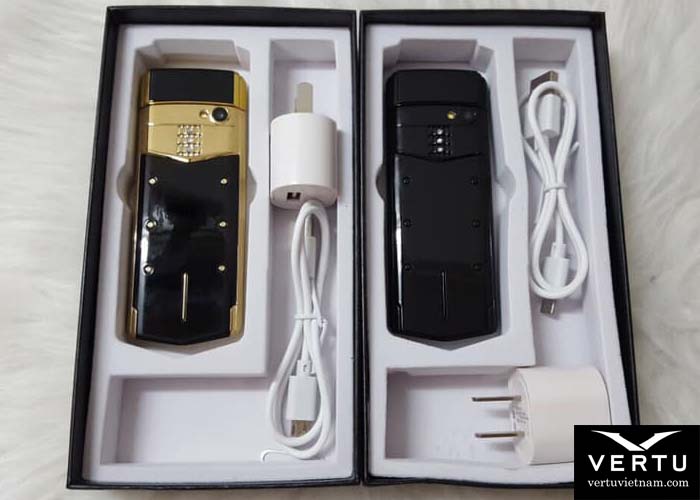 • điện thoại + pin + cáp sạc + cốc sạc + hộp vertu sang trọng